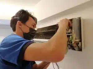 Take apart the air conditioning fan coil unit so that we can clean it.